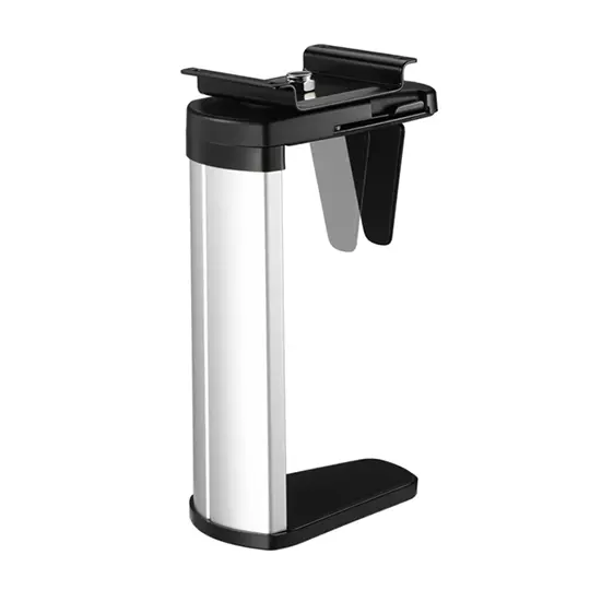 Jaw is a durable and elegant CPU holder designed to keep your workstation tidy and your equipment safe. Its sleek aluminium body securely clamps and suspends the CPU under the desk, giving the appearance of a floating unit while protecting it from dust, foot traffic, and vacuum cleaners.